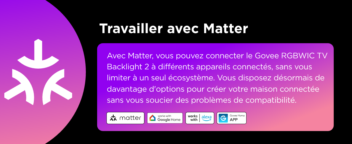 Pratique et Comode : - Compatibilité : Contrôlez vos lumières avec des assistants virtuels compatibles Matter, Alexa et Google Assistant. - Commande Vocale : Contrôle sans contact via la simple commande vocale.